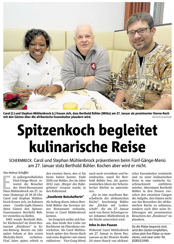 steht mit jedem Fuß in einer anderen Welt. Mit dem einen ist sie in ihrer kenianischen Heimat verankert, mit dem anderen steht sie mitten in der klassischen deutschen Küchentradition. Das bringt Bodenständigkeit und innere Beweglichkeit zugleich: „Afrikanisches Essen koche ich genauso, wie meine Mutter es mir beigebracht hat – ohne feste Regeln, dafür mit Leidenschaft und viel Erfahrung.“ Die deutsche Küche hat sie in ihrer Kochausbildung in Deutschland kennengelernt.